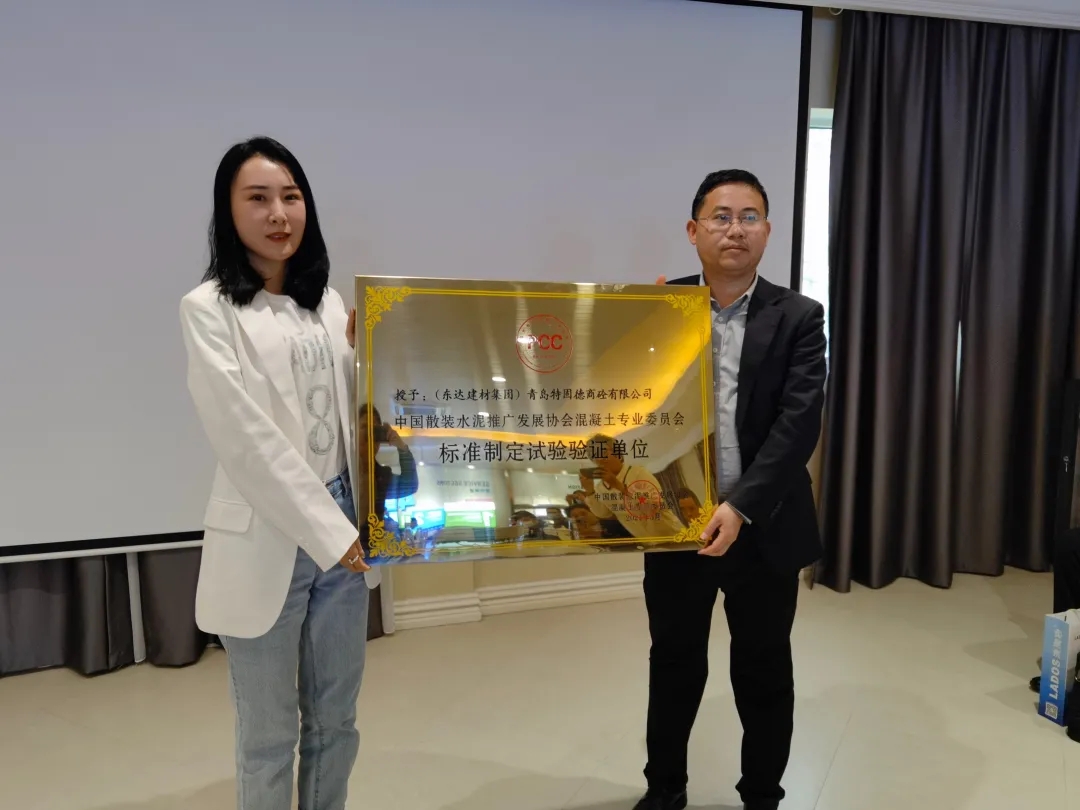 3月29日,透水混凝土、濕拌砂漿生產(chǎn)與應(yīng)用技術(shù)暨《濕拌砂漿應(yīng)用技術(shù)規(guī)程》宣貫培訓(xùn)活動(dòng)圓滿落幕,中國散裝水泥推廣發(fā)展協(xié)會(huì)混凝土專業(yè)委員會(huì)正式認(rèn)定青島特固德商砼有限公司為“標(biāo)準(zhǔn)制定試驗(yàn)驗(yàn)證單位”并現(xiàn)場(chǎng)授牌。